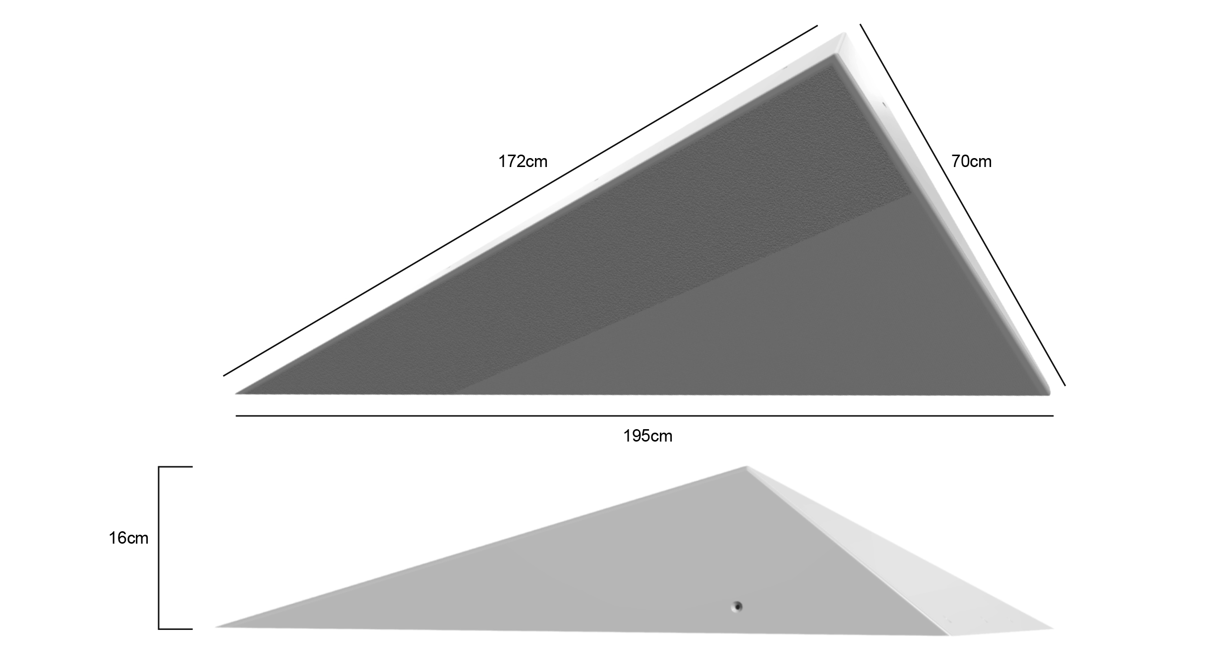 Les Migs sont des volumes triangulaires tout en longueur qui fonctionnent en paire symétrique dont la forme peut évoquer un avion. Les assemblages apportent des angles et rebords intéressants en ouverture.